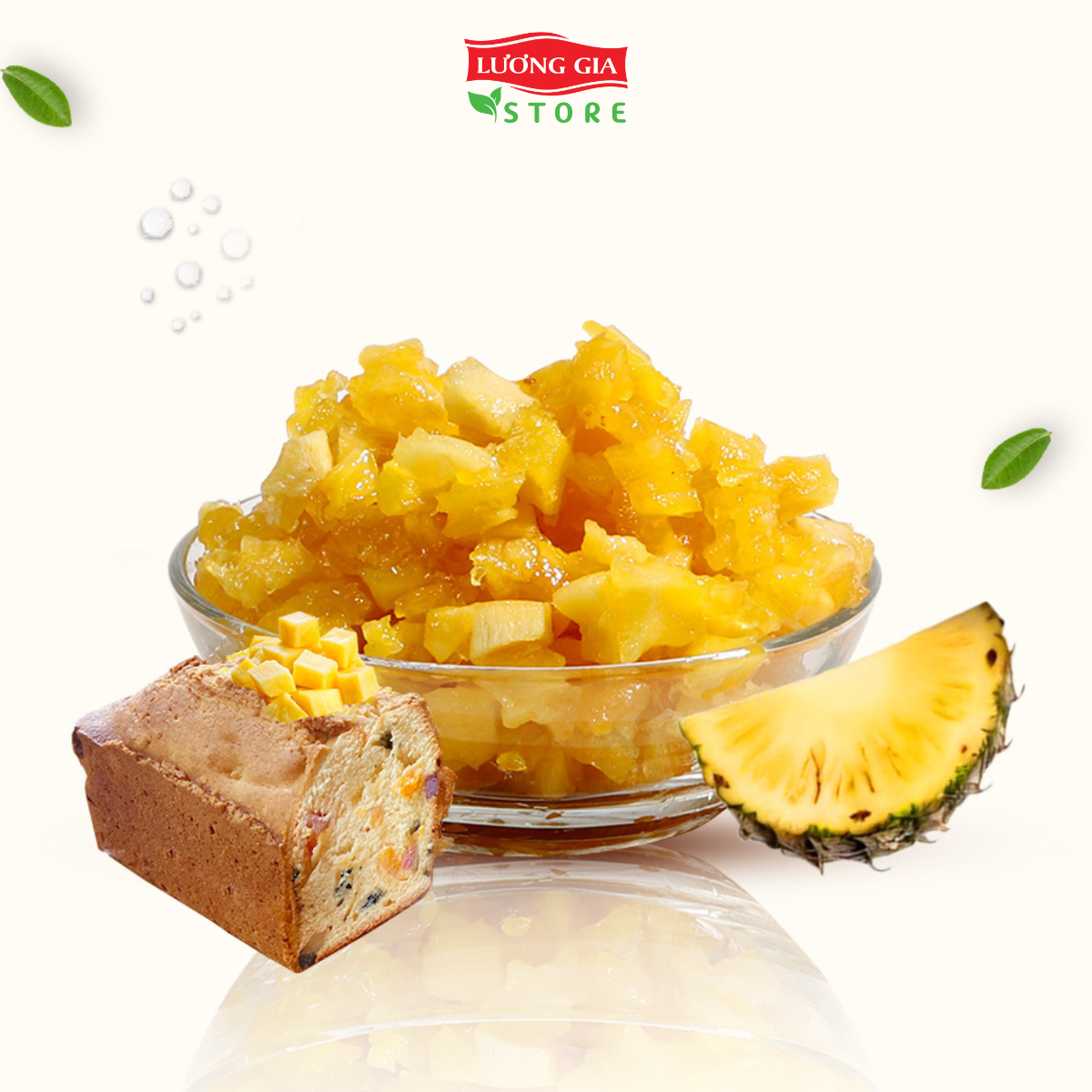 - Choppy Thơm Ohla chắt lọc từ 95% thơm tươi, có vị chua nhẹ và mùi thơm đặc trưng, giữ nguyên độ giòn dai sau khi nướng, không làm chảy nước hay ảnh hưởng đến cấu trúc bánh.