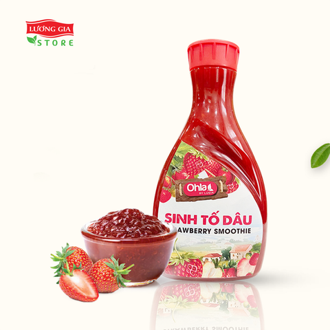 - Sinh tố Dâu Ohla mang hương vị ngọt thanh tự nhiên, màu đỏ đẹp mắt từ 60% thịt dâu tươi, rất thích hợp để pha sinh tố đá xay, trà trái cây, mocktail hoặc làm topping.