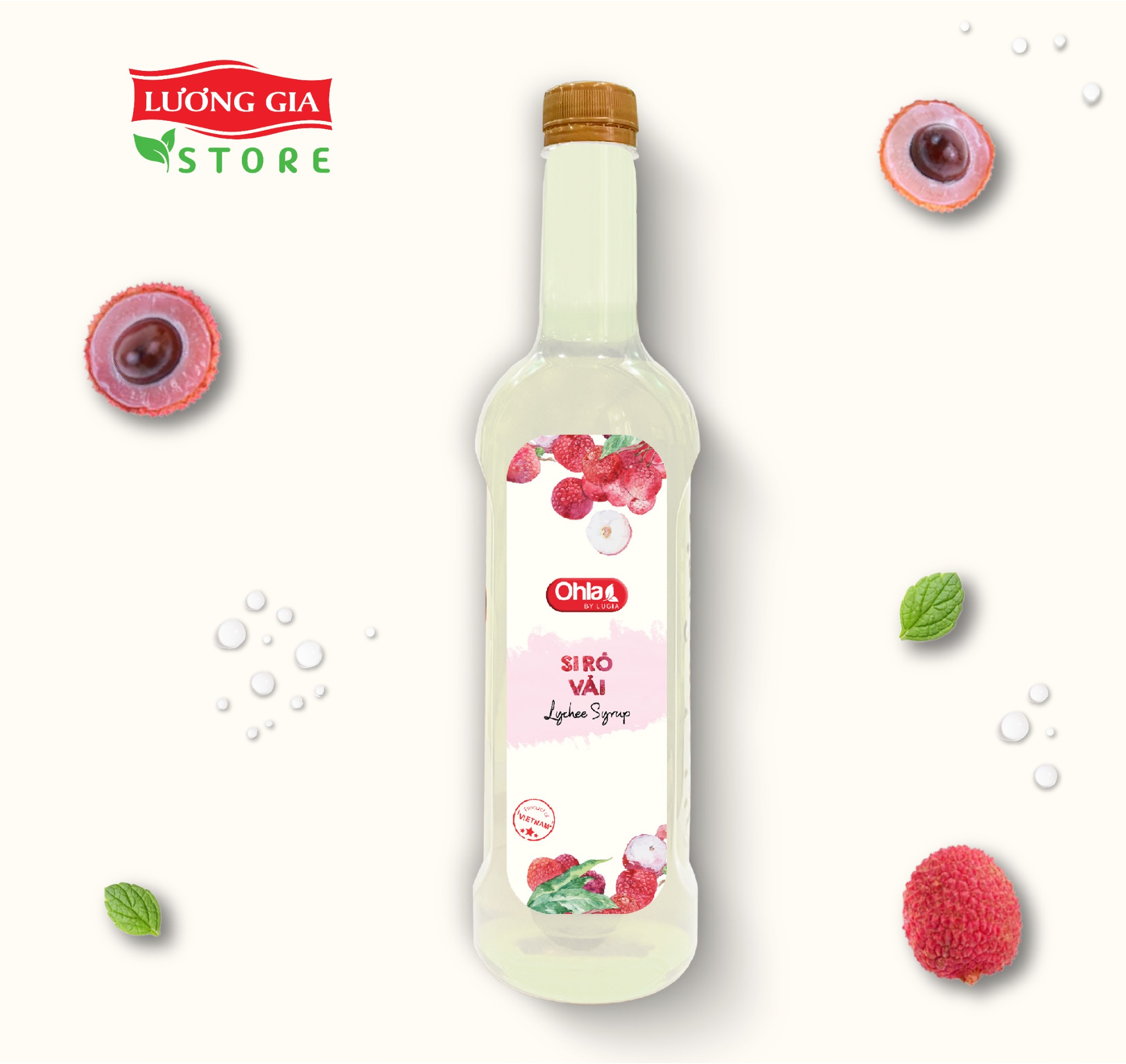 - Siro Vải Ohla có vị ngọt thanh và mùi thơm tự nhiên đặc trưng từ trái vải, phù hợp cho trà trái cây, cocktail, soda.